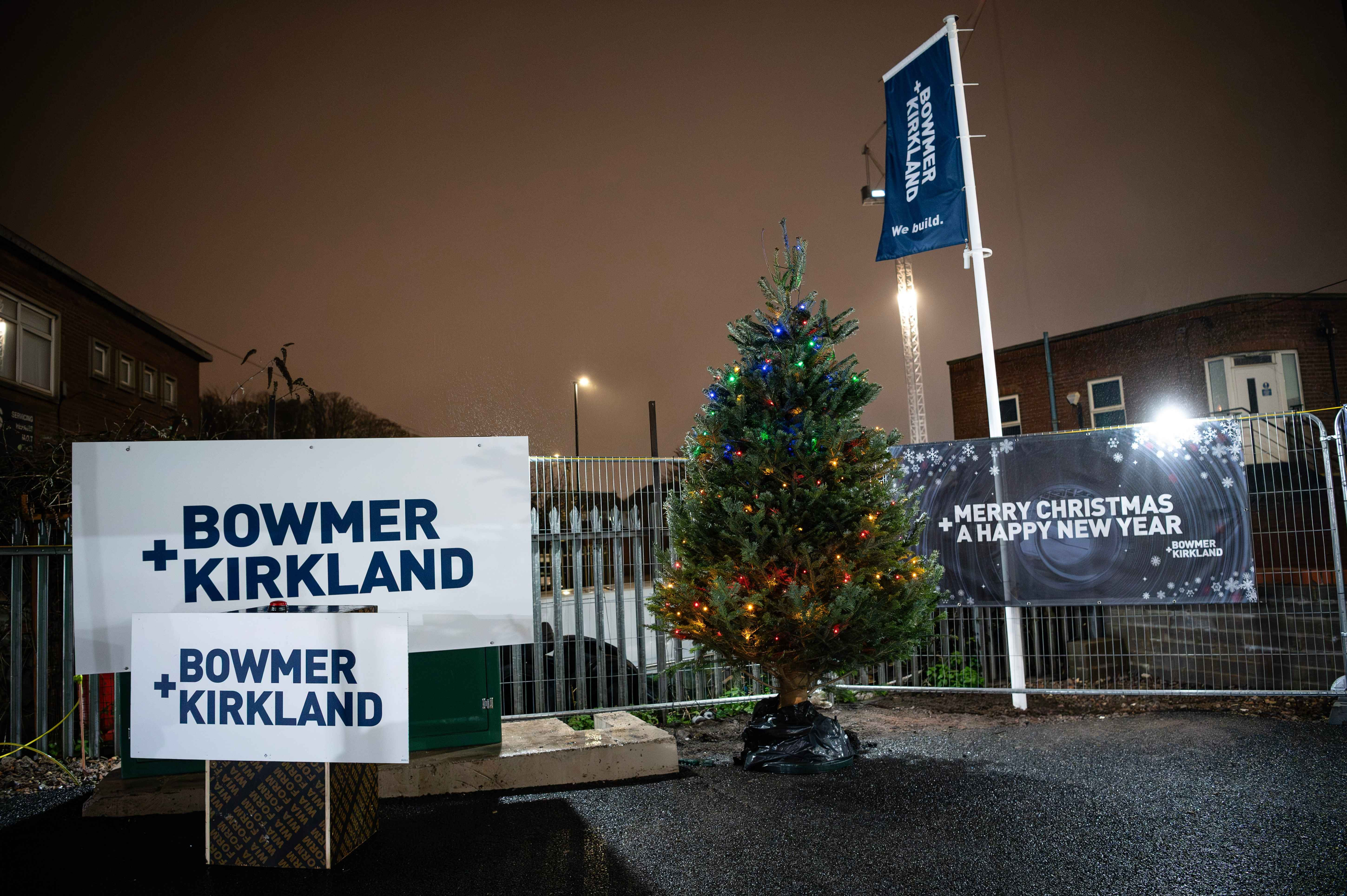 The Bowmer + Kirkland site team, together with members of the client’s team, sub-contractors and representatives from the charity were on hand to celebrate on the night, OBR Construction Group made sure that everyone was well fed, organising a pizza van, ETS Group organised the Christmas lights and Shield Services Group added the final festive touch a Christmas tree which has taken pride of place at the site’s entrance.