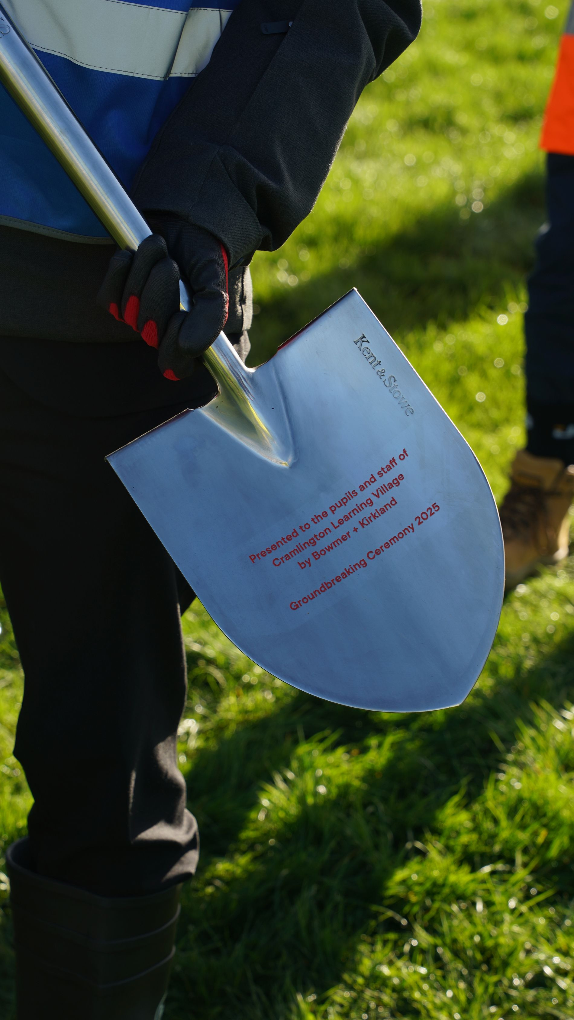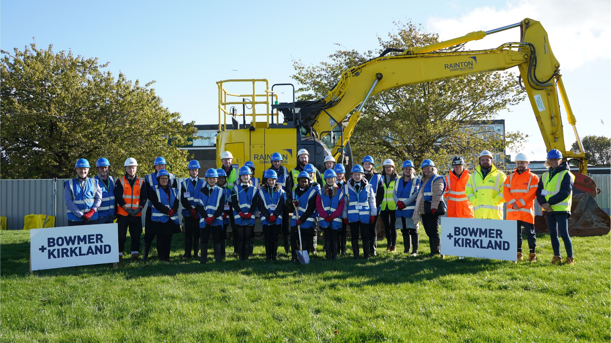 The Bowmer + Kirkland site team were joined on site by the DfE project team, Northumberland County Council, WSP and key individuals from Cramlington Learning Village, including their longest serving member of staff, Kim Rochester, who joined the school in 1985.