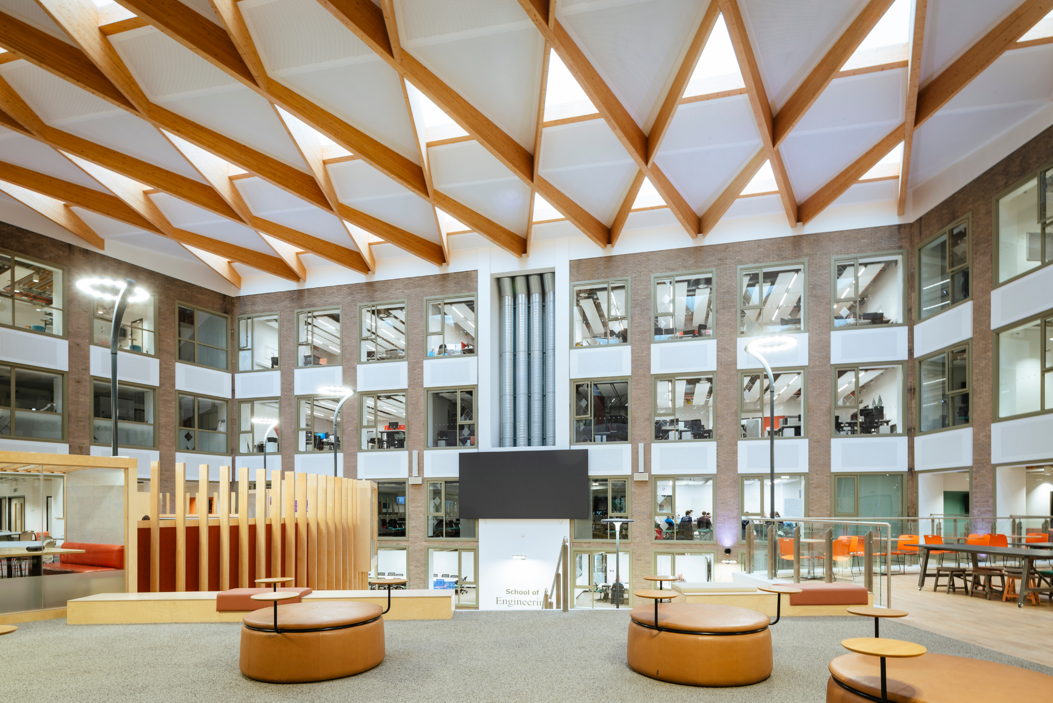 Commenting on the Stephenson Building, the RICS judges said: “The project sought to reinvigorate the existing outdated and inefficient 1950s engineering block with a future-proofed refurbishment and a dramatic extension, expanding the floor area to house seven engineering disciplines. The new vibrant atrium is central to highly functional study, workshop and collaboration spaces, letting in natural light and visibility across floors, reflecting the open and cross-disciplinary nature of the faculty.