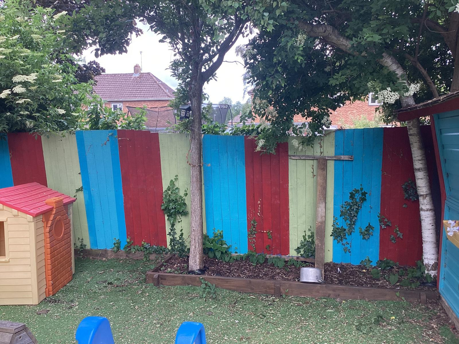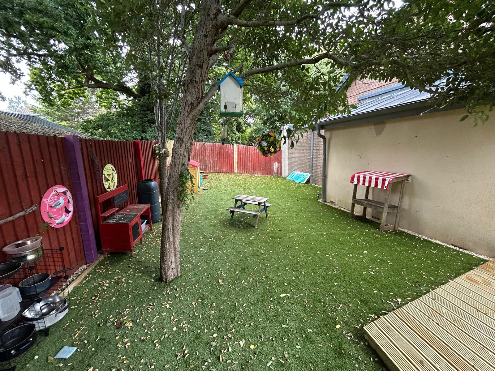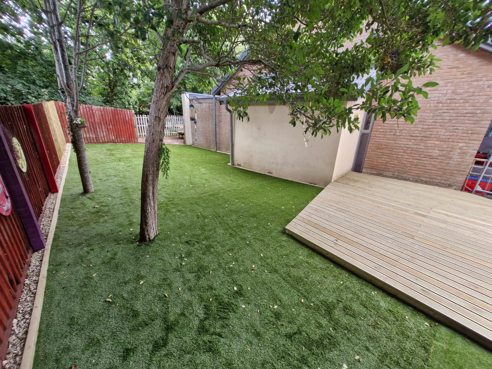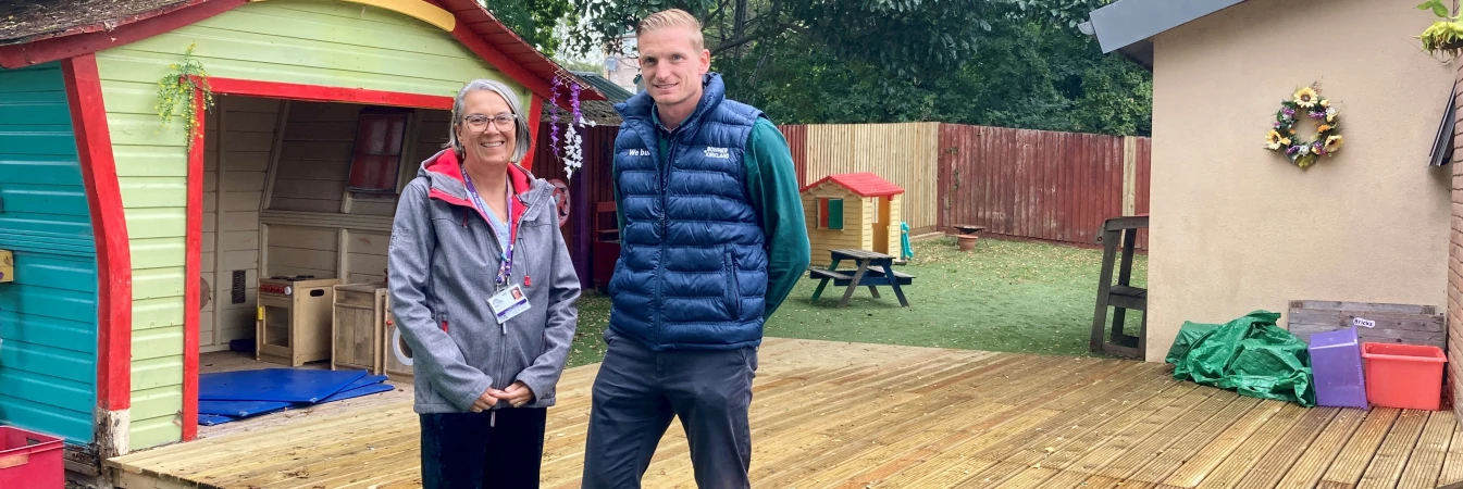 The team completed the project in just three weeks, transforming the outdoor area with new fencing, decking and astroturf, making it safe for youngsters to enjoy.