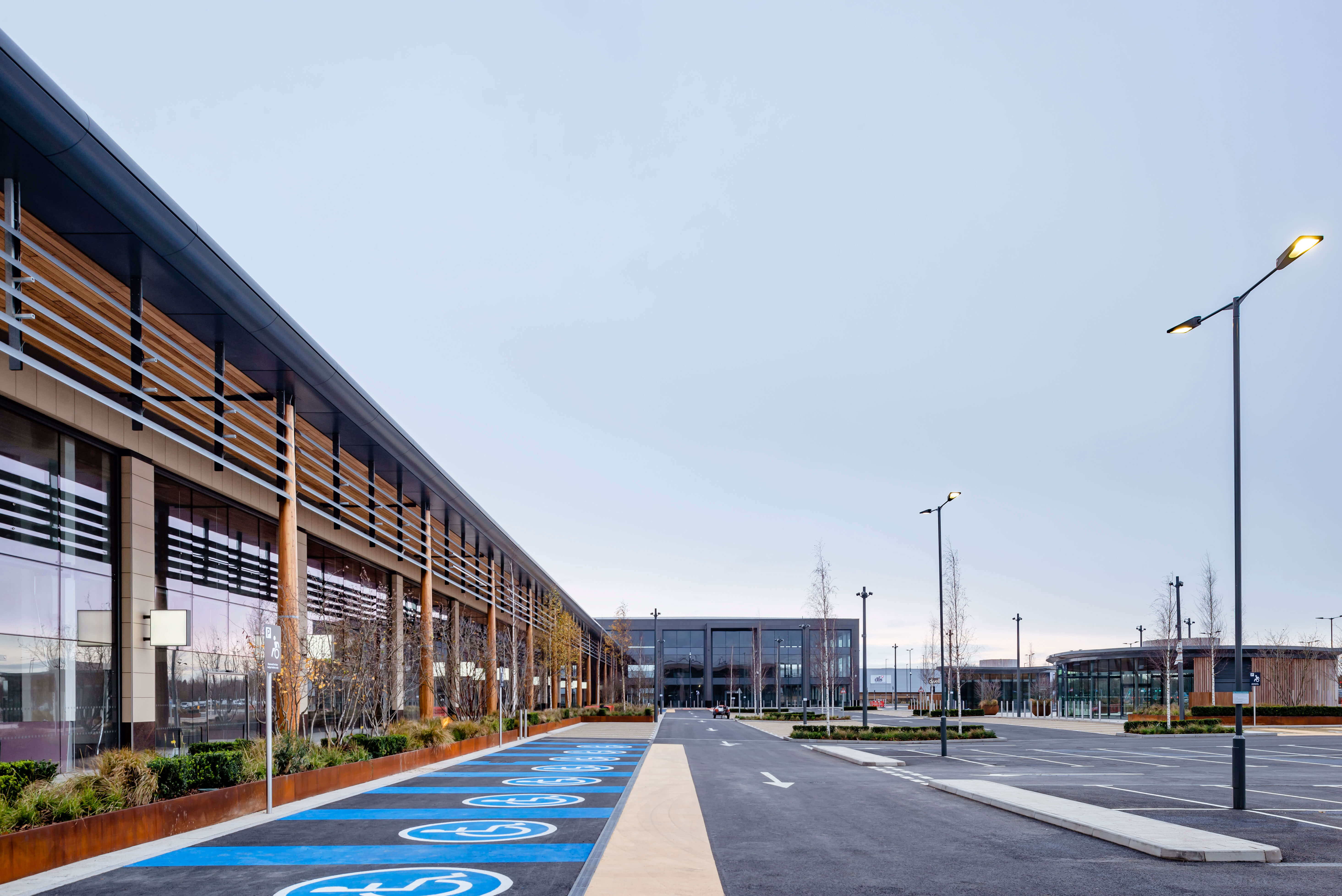 Fosse Park West included an anchor unit for Next PLC, a main retail terrace for 10 units and two kiosk units. We also constructed a main car park area and return link mall.