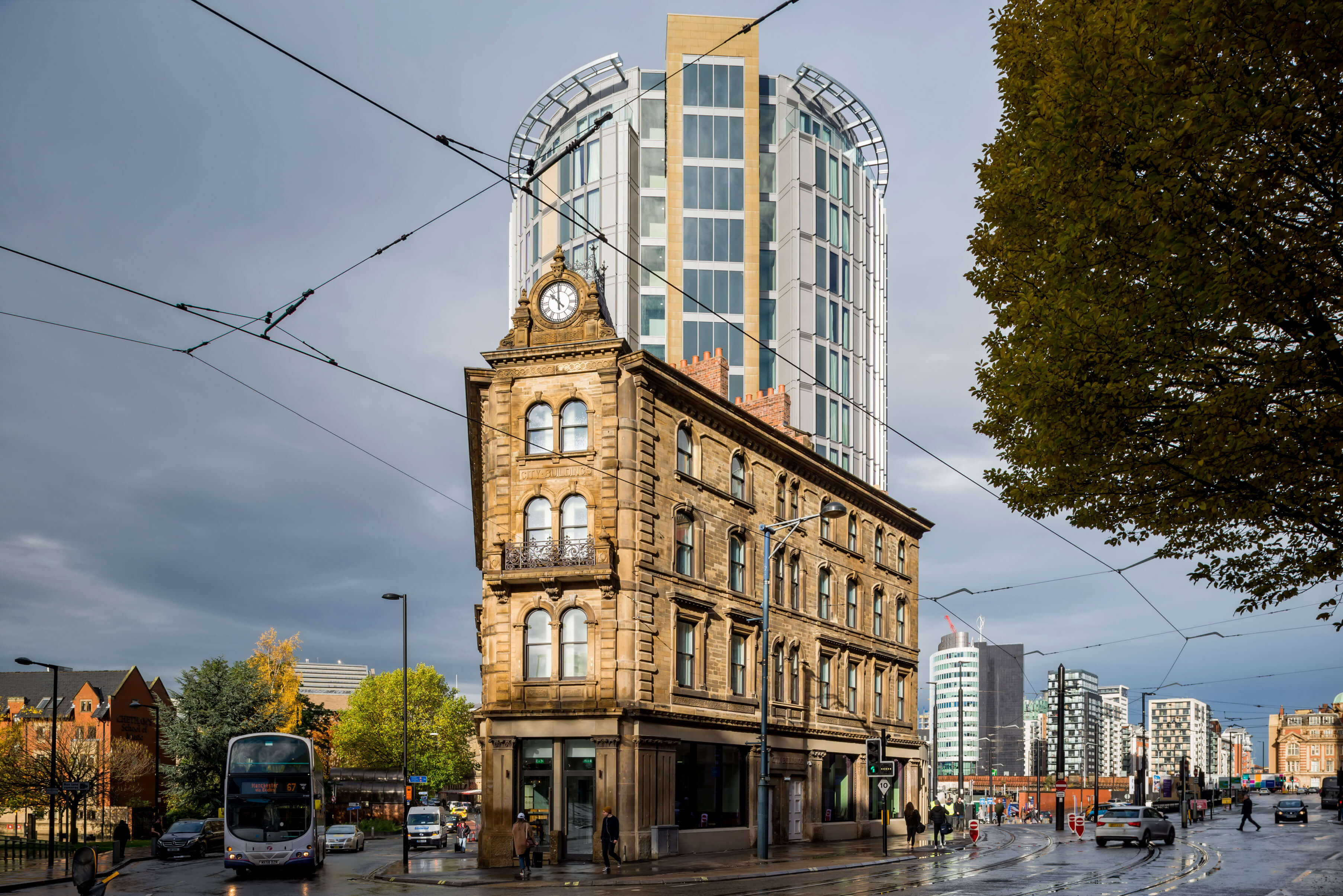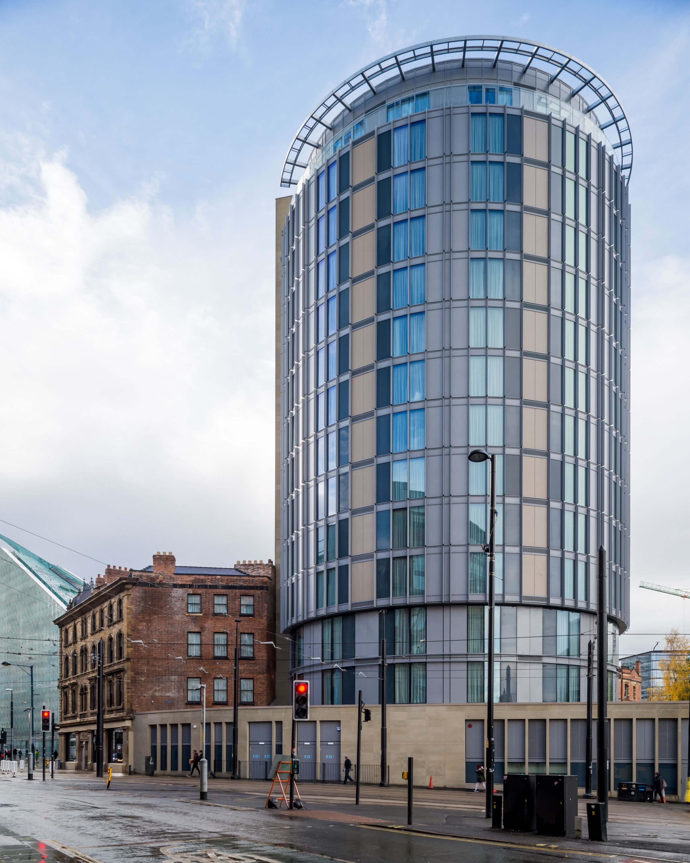 The project was a challenging mix of new build and refurbishment of existing Listed buildings. The hotel consists of 187 bedrooms – 163 in the new rotunda building and 24 within the conservation-led, refurbished Grade II Listed City Building.