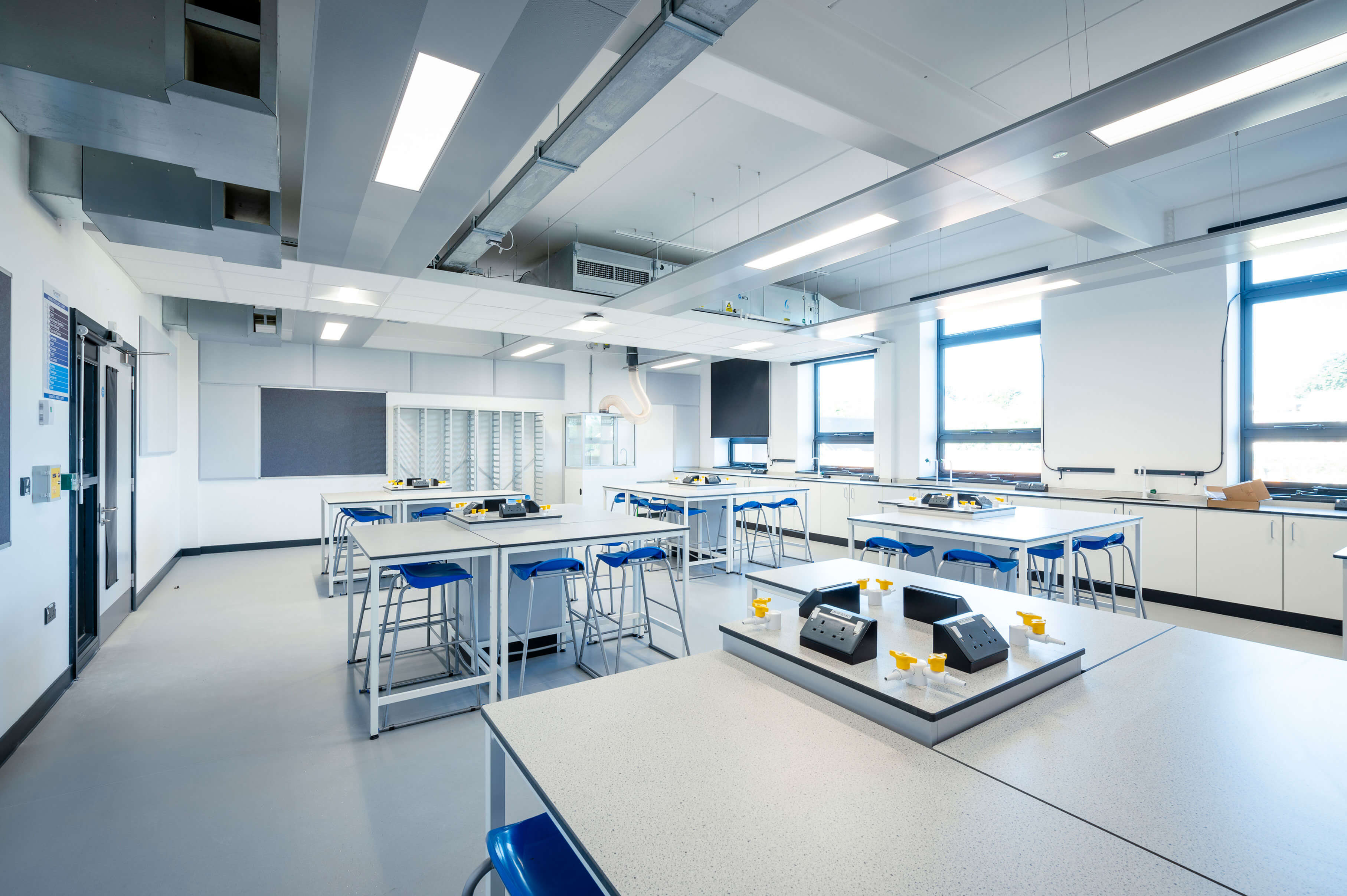 The project involved comprehensive fit-out works across various educational and support facilities to create a fully functional and engaging learning environment. In the classrooms, ergonomic furniture such as desks, chairs, and storage units were installed, along with interactive whiteboards and projectors to support digital learning. Science laboratories were equipped with specialised fittings, including fume cupboards and secure storage for chemicals and apparatus. The library was furnished with shelving, reading tables, and comfortable seating to provide a conducive space for study and research.