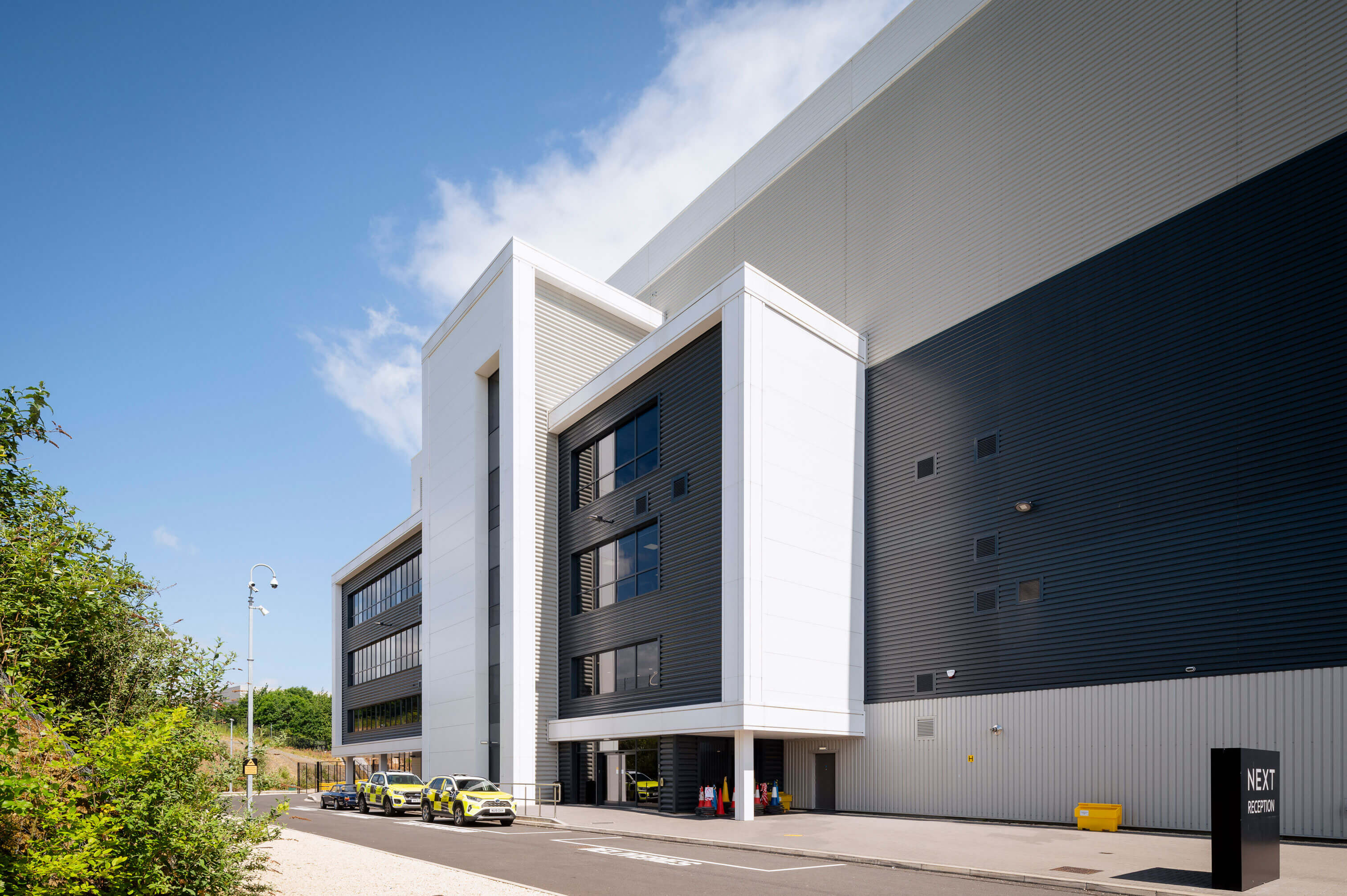 The development was accelerated on programme in late 2020 by Next due to the high demand on their online trading and was specifically designed by Next to incorporate two five storey mezzanine structures with a total upper floor area of 106,940m2, a haunch height of 23m and parapet height of 27m.