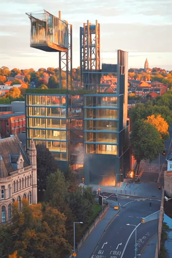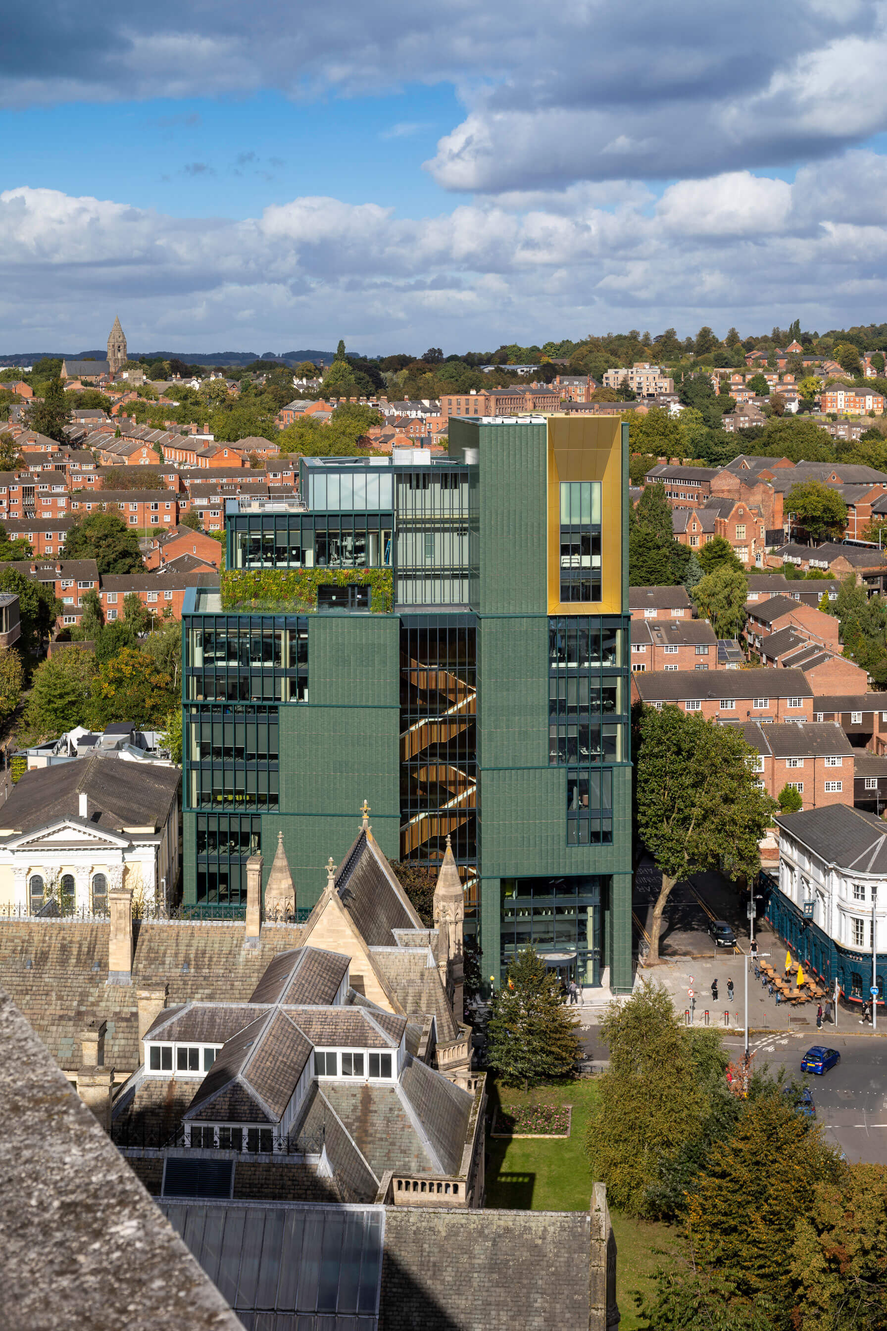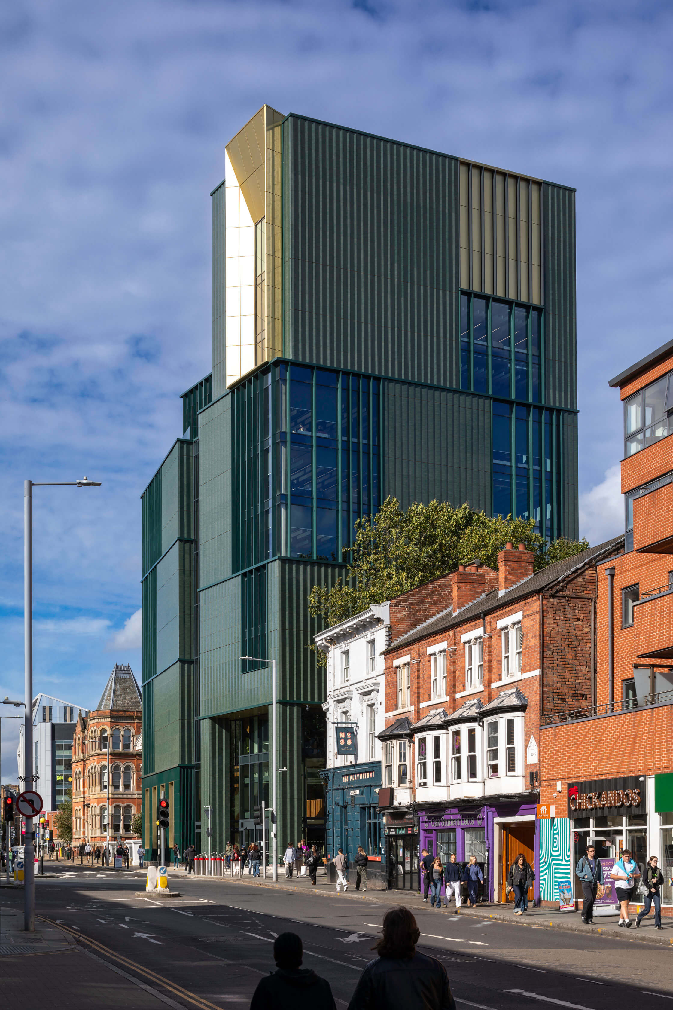 The building is situated on the site where several three storey buildings were demolished. The building development was constricted by University Hall, a Grade-II listed building to the west and to the north by the Nottingham Mechanics Institute building.
