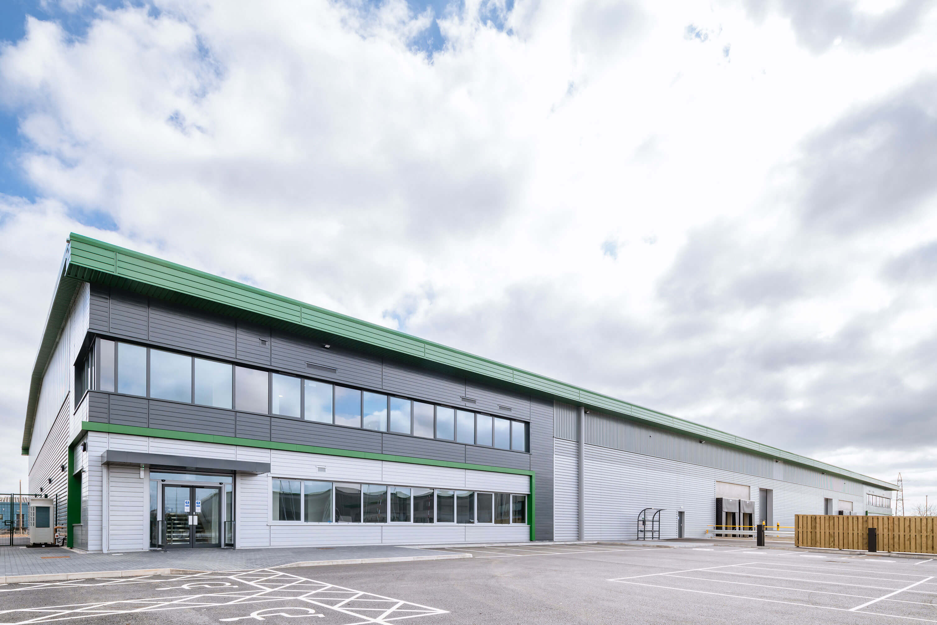Warehouse floor slabs were designed to cater for a UDL of 50KN/m2 and 90KN racking leg point load. Slabs were finished to achieve FM2 / AR1 rating in accordance with TR34. All units were provided with both level access doors and loading docks to facilitate a wide range of end user requirements.