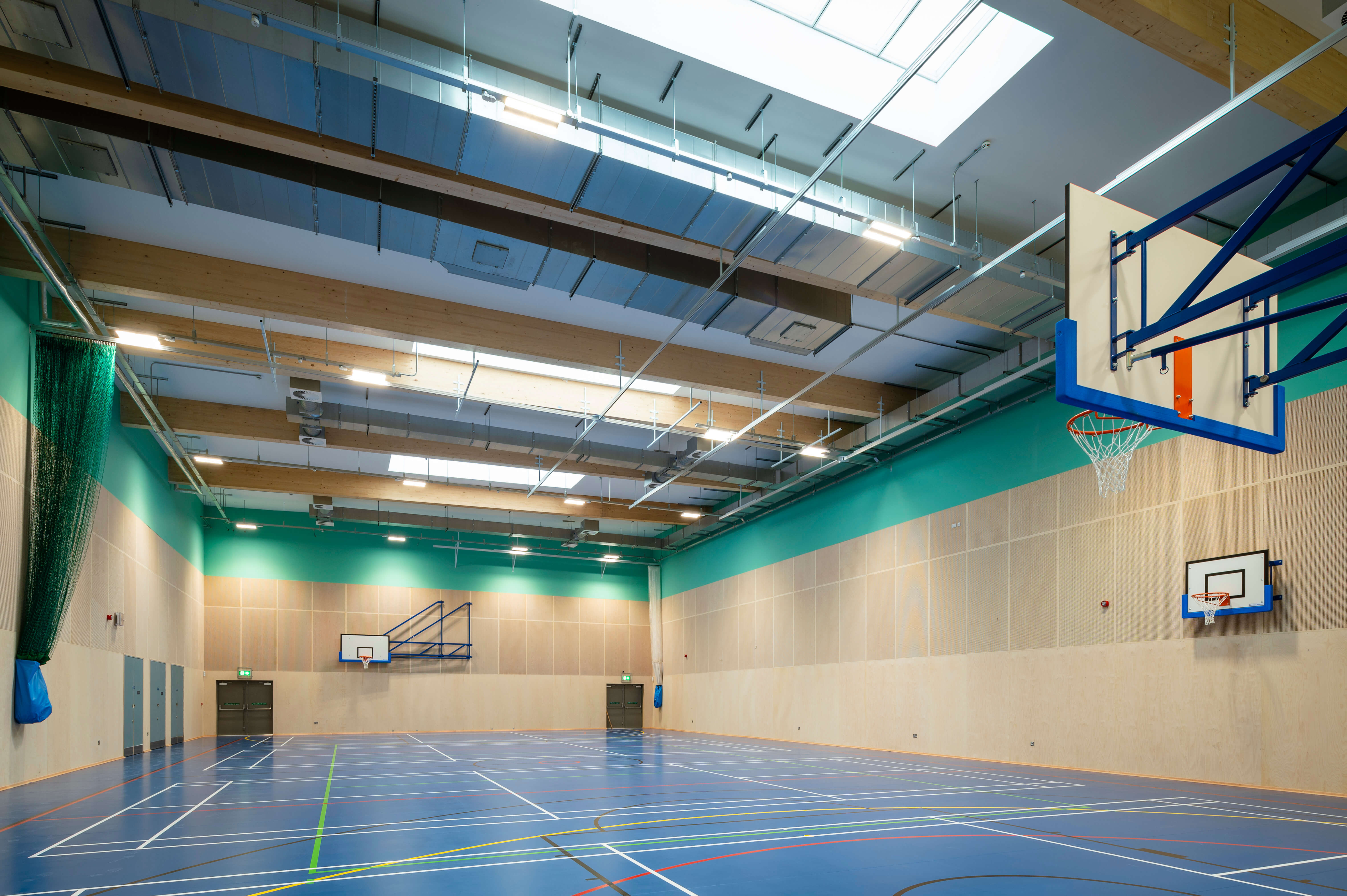 Located within the north east of Reading, adjacent to the famous Reading Festival site, the project was procured via the DfE MMC Framework, via a two-stage process and will accommodate 1,500 people including support staff. the school comprises of two buildings connected by enclosed corridors on the upper floors.