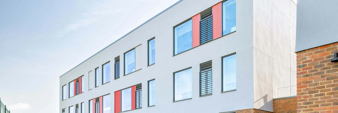 The school buildings have developed over time and are typical of many school sites in the post war era, where expansion and one-off projects have resulted in an ad hoc spread of buildings of different styles and quality. The buildings are a mixture of construction types and age ranging from concrete framed 1950’s original construction with facing brick facades, sports hall with inflated roof, metal framed clad buildings.