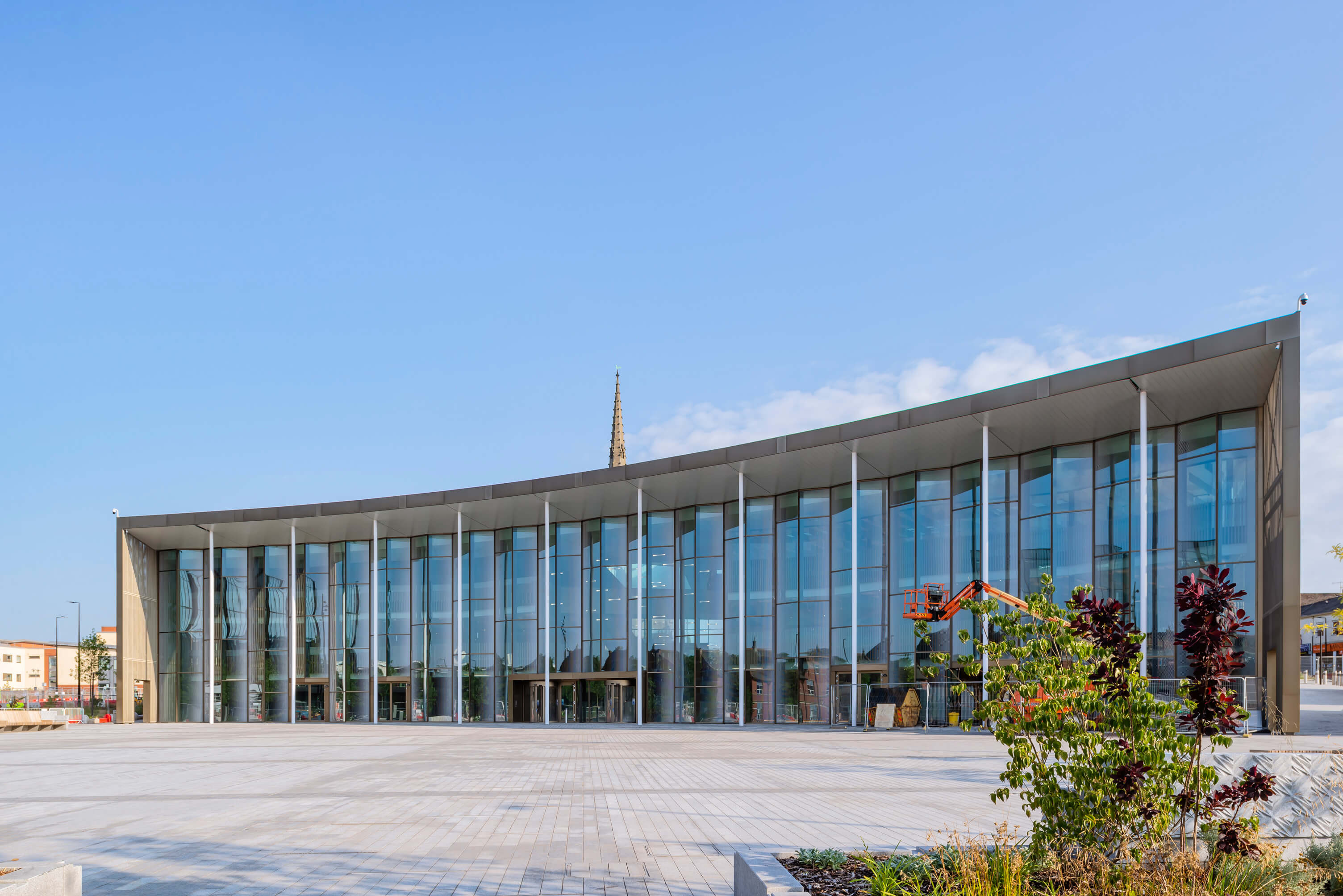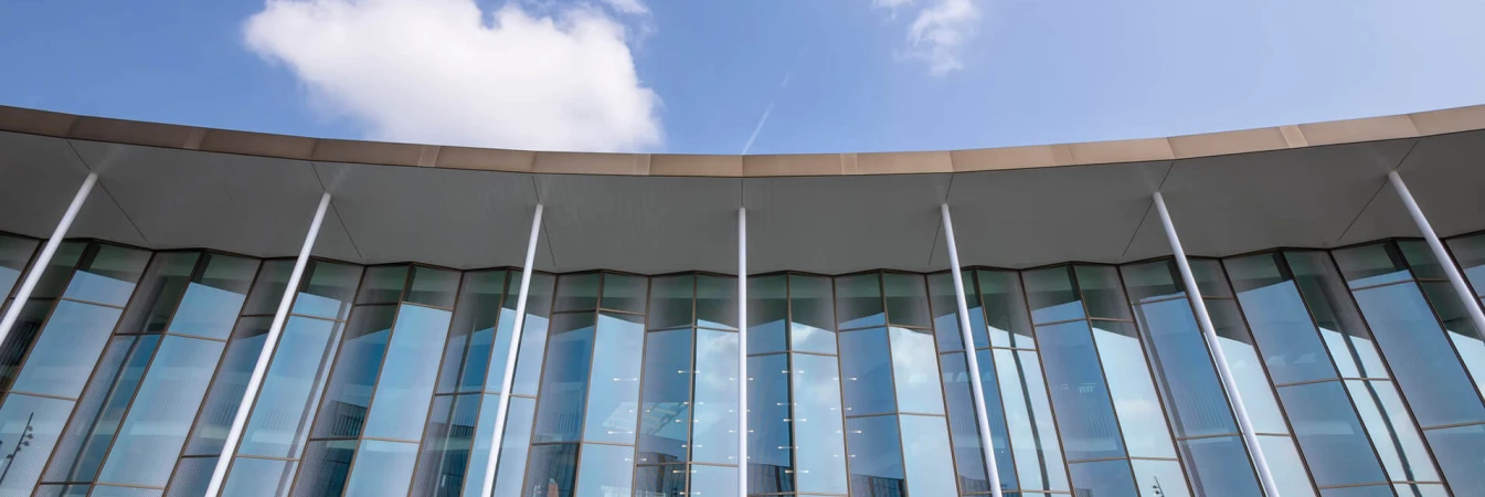 This landmark development created a gateway to the university from the city centre. The centre, designed by Hawkins Brown Architects has a curved facade that embraces the square with a high colonnade, offering shade and shelter, allowing a transition between inside and outside.