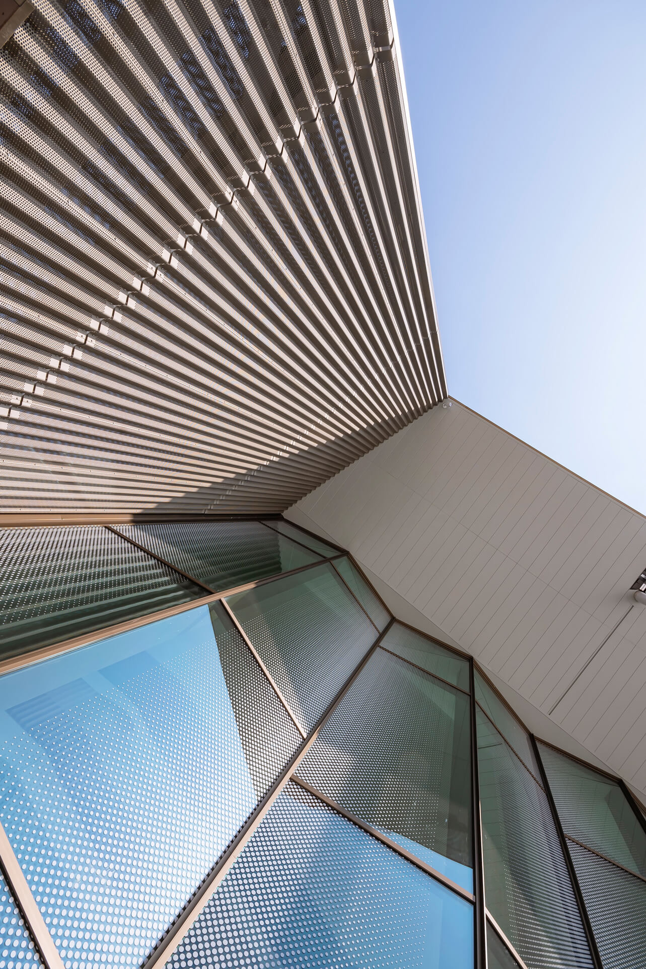 The south facing facade has been engineered to minimise direct solar gains in summer, capture passive gains in winter, and provide daylighting all year round. High performance solar glazing is supplemented with a frit which forms part of the architectural narrative. A demand-controlled displacement ventilation system was provided and a PV array has been integrated to follow the line of the sweeping elevation at roof level.