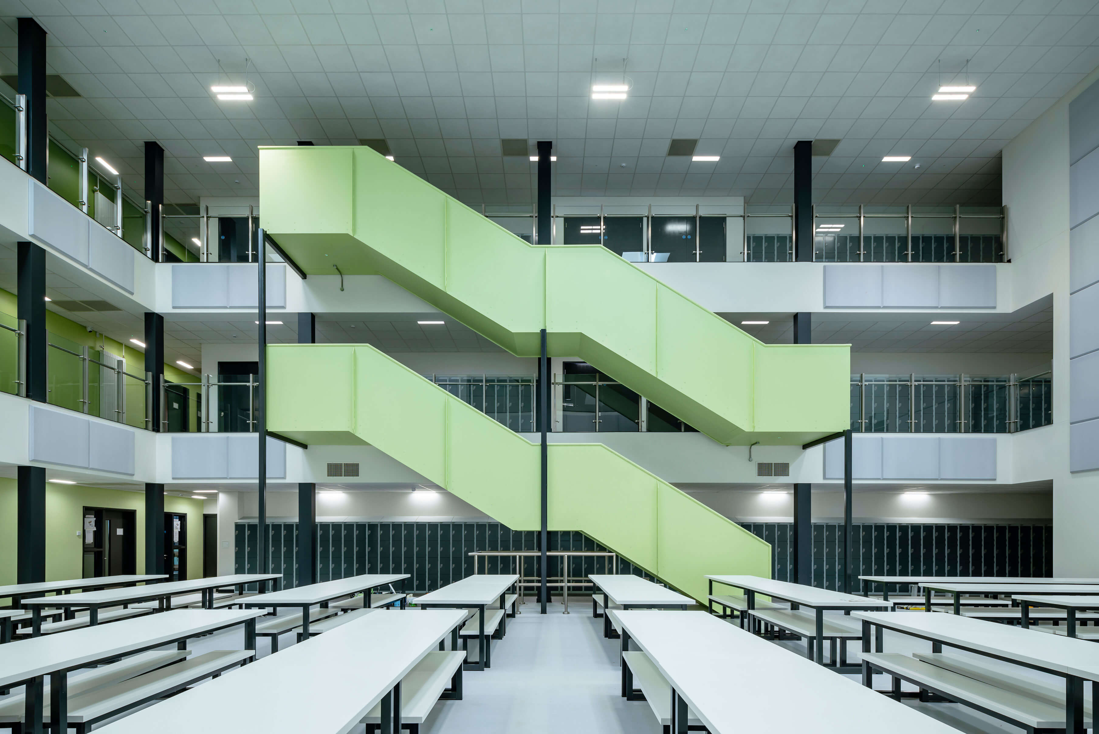 The sustainable approach included improvements to parking space, optimising the building's orientation to reduce solar gain and overheating, and achieving enhanced insulation, improved airtightness, efficient heating systems with heat pumps, low energy LED lighting, hybrid ventilation, and all-electric catering solutions.